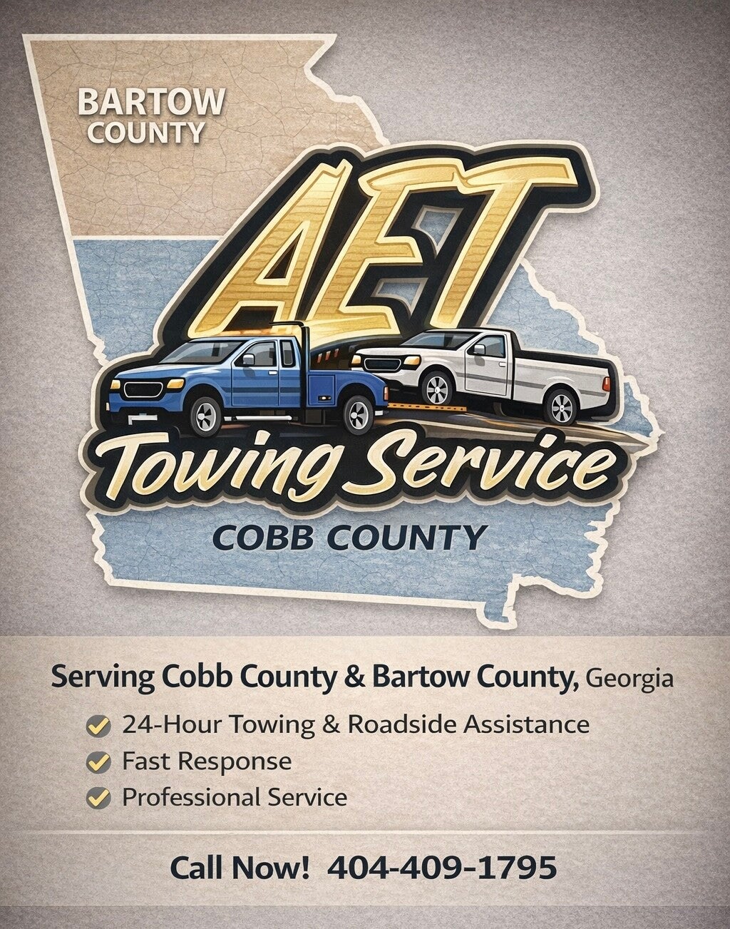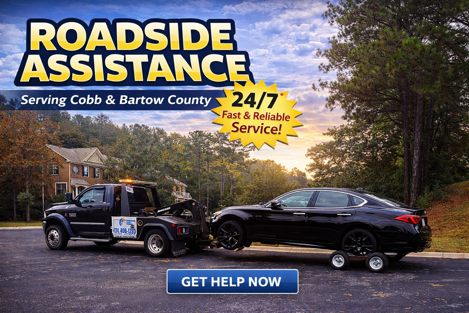 We strive to provide fast, reliable towing and roadside assistance in Cobb County & Bartow County, GA. We offer 24/7 towing services, including breakdown towing, accident recovery, and vehicle transport.